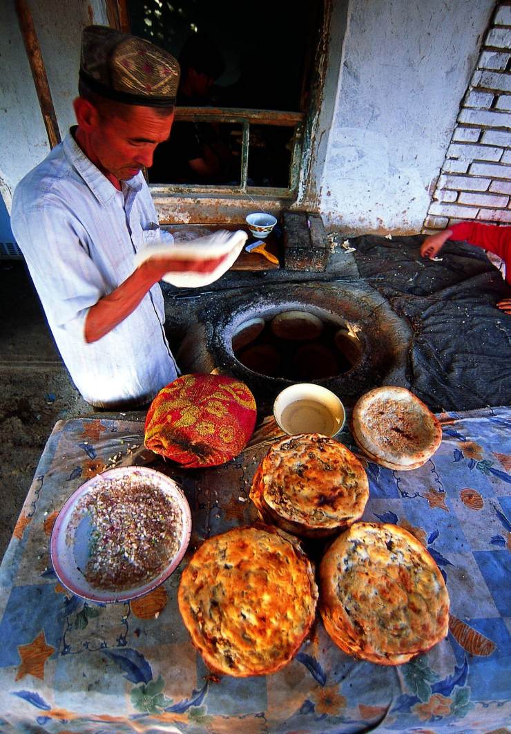 - Naan Bread (馕): A staple of Uyghur cuisine, this round, flat bread is baked in clay ovens and often topped with sesame seeds.