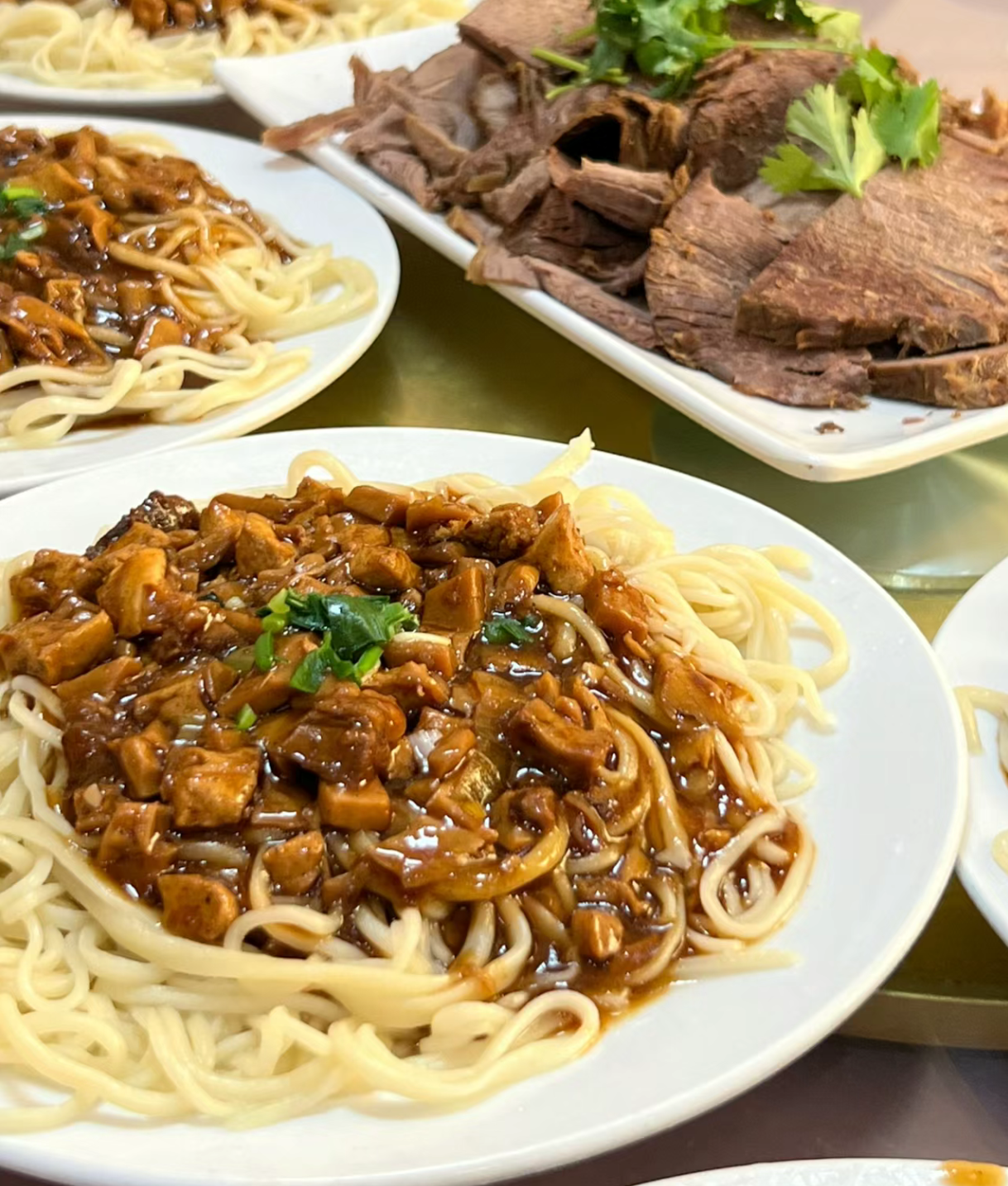 - Yangrou Paomo (羊肉泡馍): A hearty dish of crumbled flatbread soaked in a rich lamb broth, served with pickled garlic and chili paste.