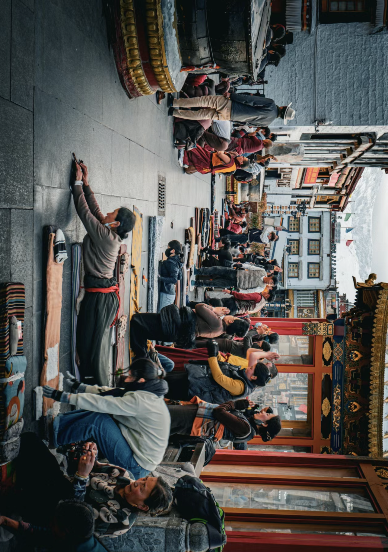 At the heart of Barkhor Street is Jokhang Temple. The temple’s original name "Rasa" evolved into "Lhasa," which became the name of the city. Hence, it is often said, “First came Jokhang Temple, then came Lhasa.” The temple's main attraction is the 12-year-old Shakyamuni Buddha statue brought by Princess Wencheng, which contributes to Lhasa being known as a "sacred land." The third-floor platform offers a great view of Potala Palace and Jokhang Temple Square. Another notable sight is the Tibetan pilgrims prostrating in front of the temple, a moving display of faith.