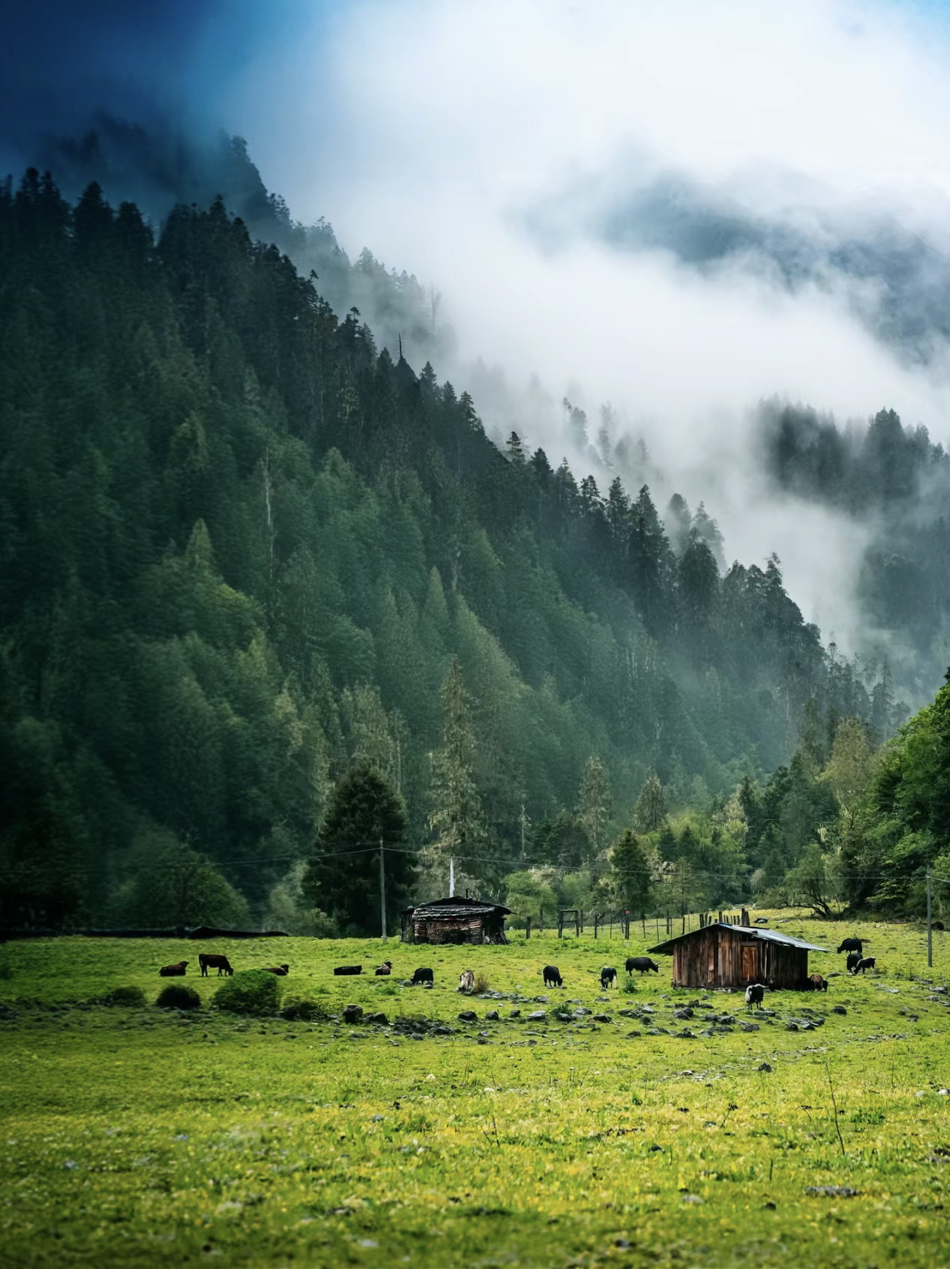Often called the "Swiss of the East," Rulang is known for its clouds, mountains, Tibetan houses, meadows, fences, and flowing streams, creating a tranquil and picturesque scene. I highly recommend that anyone traveling from Lhasa to Nyingchi make sure to visit Rulang, as it is a must-see destination in Nyingchi!