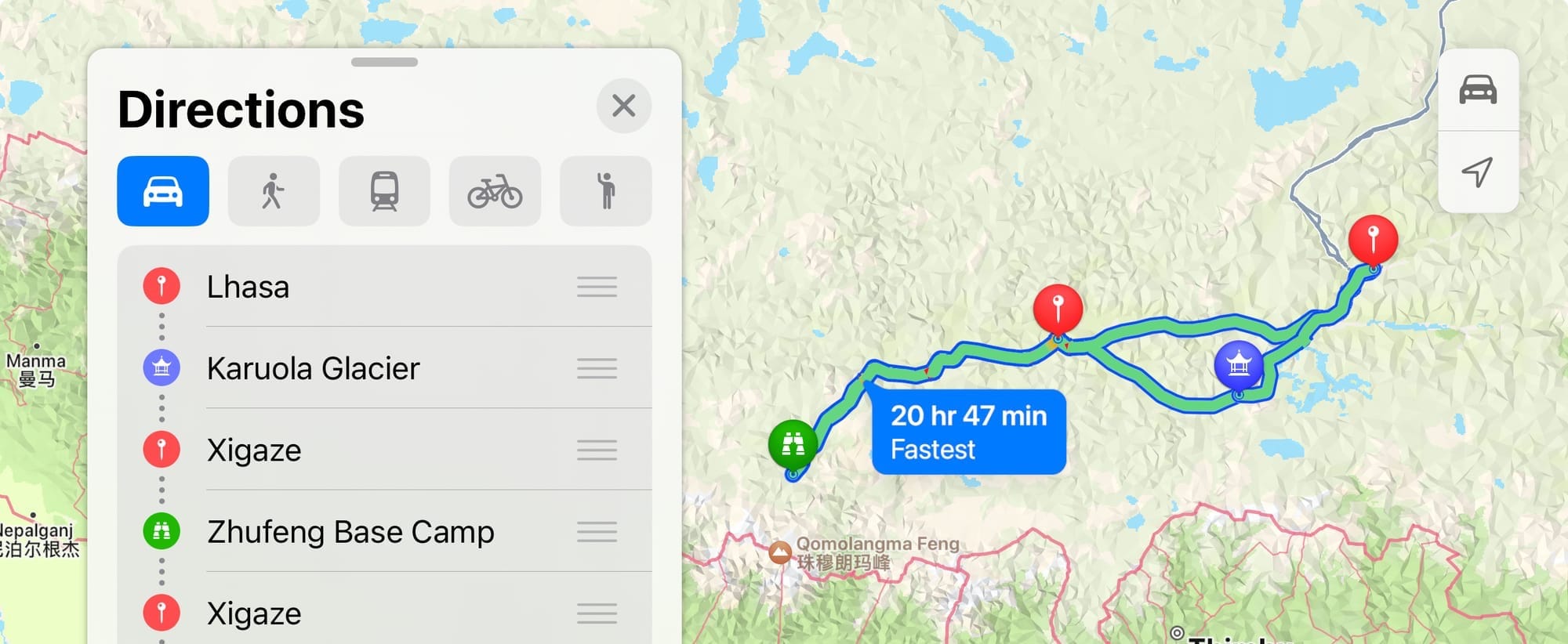 Nyingchi has three classic carpool routes that you can choose from based on your schedule. The three routes are three, four, or five days long.