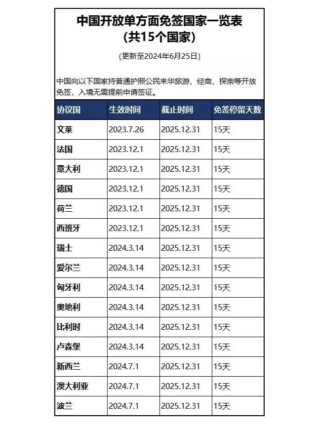 - List of Countries Offering Visa-Free Entry to China (Total 15 Countries) (Updated as of June 25, 2024)