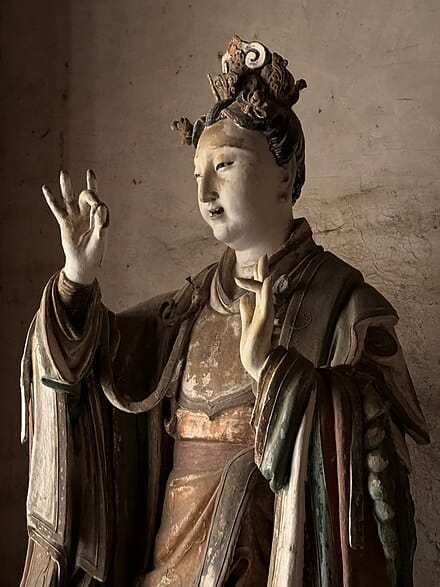The main axis of Foguang Temple runs east to west, spread across three platforms built into the landscape. The temple houses over 120 buildings, including halls, pavilions, towers, and pagodas. The East Hall, with seven bays, dates back to the Tang Dynasty, while the Wenshu Hall, also with seven bays, is from the Jin Dynasty. The other buildings date to the Ming and Qing dynasties. Foguang Temple’s Tang Dynasty architecture, sculptures, murals, and inscriptions hold immense historical and artistic value.