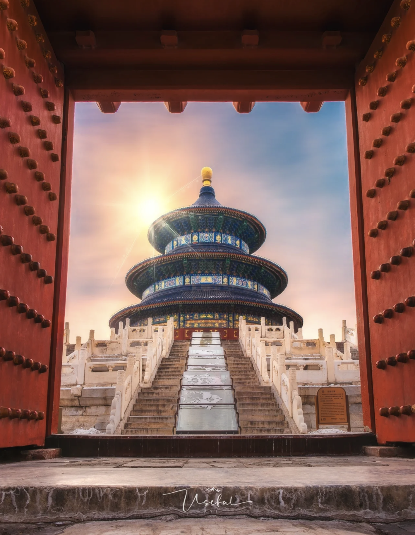 - 📍Shooting location: Head to the Guxi Gate behind the Hall of Prayer for Good Harvests and use the gate's frame for composition. An ultra-wide-angle lens works best here. For a crowd-free shot, either be among the first to enter in the morning or set up a tripod and use multiple exposures to remove people in post-processing.