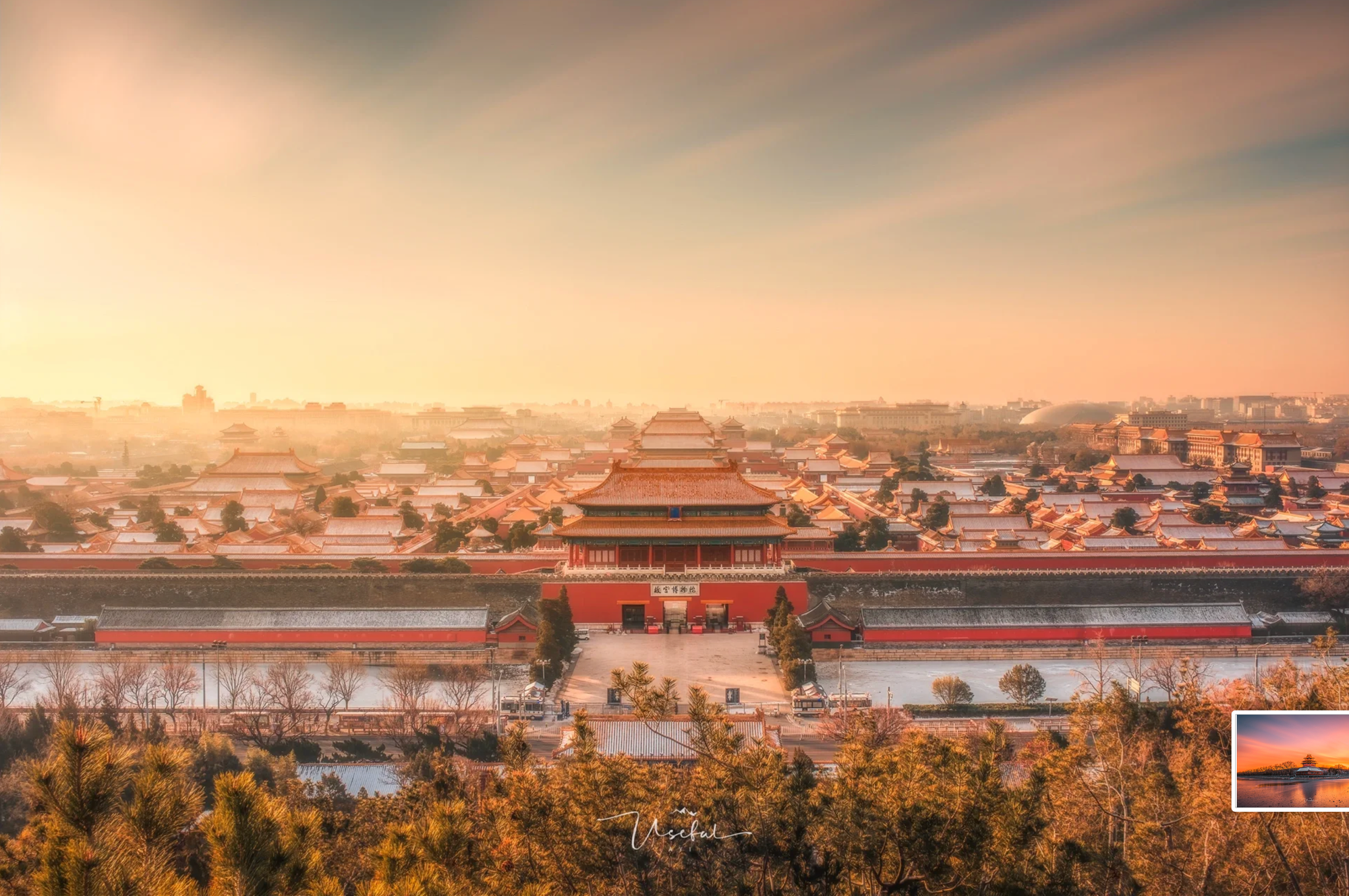 - 📍Shooting location: Jingshan Park offers the perfect vantage point for capturing a panoramic view of the Forbidden City. It's a popular spot, so arrive early to secure a position directly facing the central axis.
