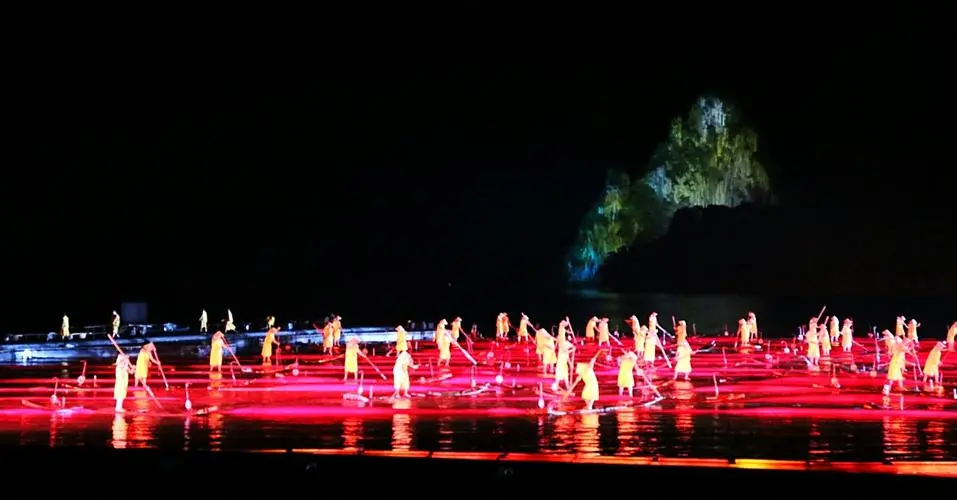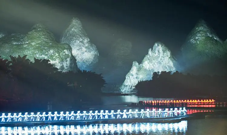 In the evening, enjoy the Impression Sanjie Liu light show, set against the backdrop of the Li River and the karst mountains. Directed by Zhang Yimou, this outdoor performance showcases the region’s culture through a blend of music, dance, and stunning visual effects.