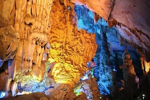 Explore the Reed Flute Cave, an awe-inspiring limestone cave filled with stalactites and stalagmites. The cave is beautifully illuminated, creating a surreal experience as you walk through its otherworldly chambers.